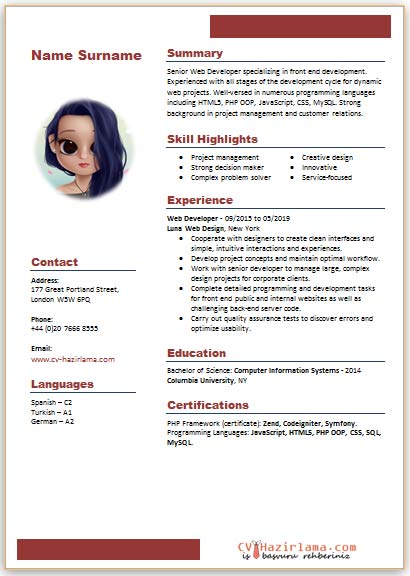 Başvuracağınız pozisyona ve şirkete göre önce sizinle iletişim kurulur. İstediğiniz şablona veya fikre göre İngilizce CV’niz hazırlanır. CV size mail olarak gönderilir. CV’ler standart olarak aksini belirtmediğiniz sürece Word dosya formatında gönderilir. CV boyutunun büyük olması halinde zip dosyası içinde CV’niz size ulaştırılır.